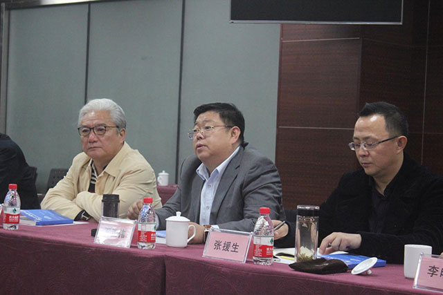 厦门市物联网行业协会会长赵善仁(中)在协会座谈会上发言