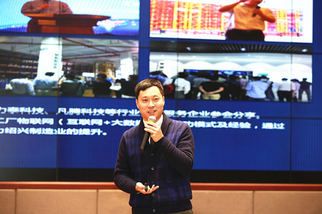 图为:杭州市物联网行业协会秘书长徐明在会上讲话