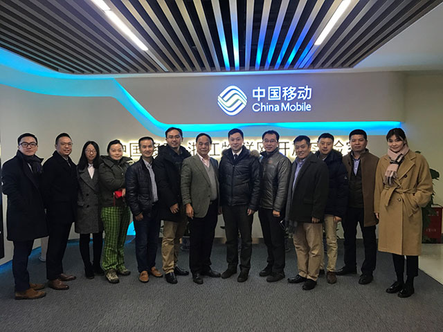 图为:徐明秘书长与到会的联席会成员单位实地走访中国移动·浙江物联网开放实验室