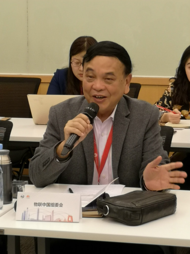 图为:“物联中国”联席会组委会主任、厦门市物联网行业协会会长赵善仁在会上发言