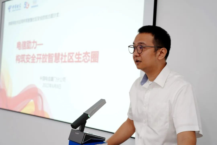 在主题演讲环节,中国电信厦门分公司智慧社区市场负责人林璟通过《助力构筑安全开放智慧社区生态圈》的主题演讲,介绍了智慧安防小区建设内容、平台管理模式、阶段成效等。林璟表示,未来中国电信厦门分公司希望与更多的行业伙伴携手合作,共同助力提升社区治理服务水平。