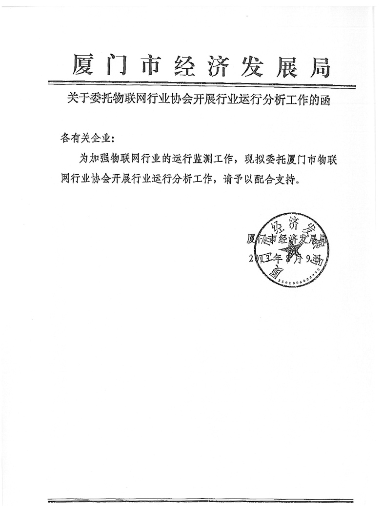 关于委托物联网行业协会开展行业运行分析工作的函