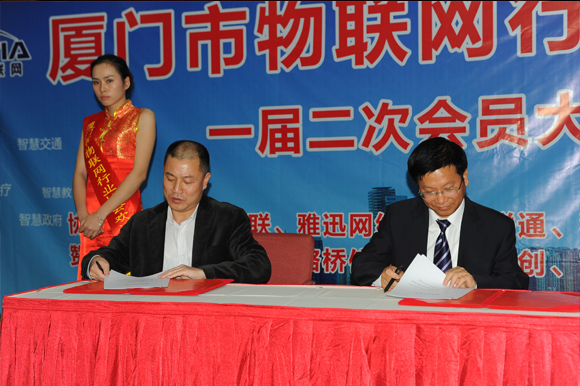2013年11月20日下午,厦门市物联网行业协会一届二次会员大会暨周年庆祝联欢晚会在佰翔空港酒店隆重举行。市有关部门领导、厦大、集大、理工等相关学院领导及127家会员单位代表参加会议,大会审议通过了赵善仁会长所作的工作报告,表决通过了新增副会长、常务理事、理事、副秘书长、会员名单、财务报告。会上还举行了隆重的签约仪式,协会分别与火炬创投举行火炬物联网产业投资基金的签约仪式、与工行厦门分行举行战略合作签约仪式、与中展世纪商务展览有限公司合作举办厦门国际物联网展会签约仪式。