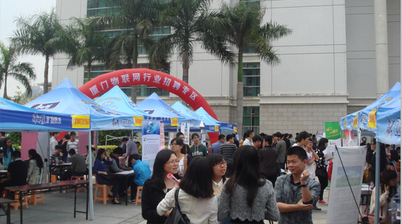 2014年4月23日下午,厦门市物联网行业协会与厦门市龙岩(新罗)商会联合集美大学就业指导中心在集美大学校部嘉庚图书馆门前广场成功举办了“集美大学2014届毕业生春季就业双向选择洽谈会暨首届物联网行业招聘会”。此次招聘会旨在为加强与高校之间的交流合作,搭建物联网企业和毕业生双向选择的平台,吸引更多优秀高校毕业生服务物联网行业经济建设。招聘会吸引了40家厦门物联网产业的核心企业参加,现场气氛热烈,企业、应聘生都有所收获,满载而归。