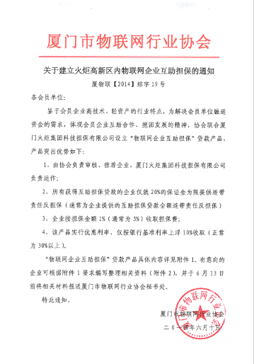 鉴于会员企业高技术、轻资产的行业特点,为解决会员单位融通资金的需求,体现会员企业互助合作、抱团发展的精神,协会联合厦门火炬集团科技担保有限公司设立“物联网企业互助担保”贷款产品,产品突出优势如下:
