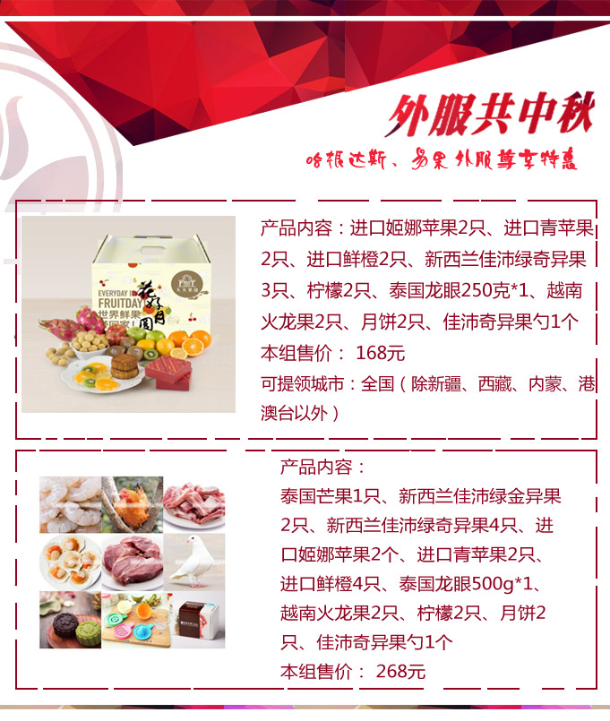 回复“外服共中秋”即可获得“明月几时有,外服共中秋”具体活动信息。