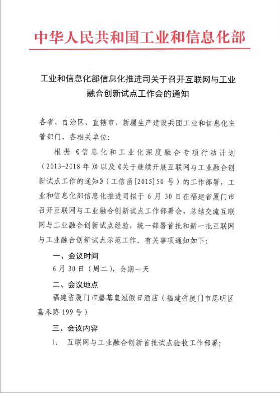 互联网与工业融合创新试点工作部署会暨企业经验交流会