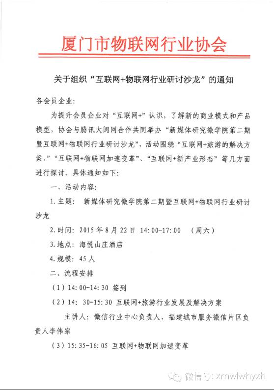 1.主题: 新媒体研究微学院第二期暨互联网+物联网行业研讨沙龙