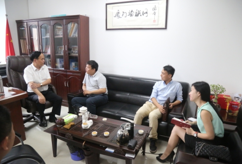 厦门市物联网行业协会会长赵善仁(左一)与中国安防展览网一行交流中