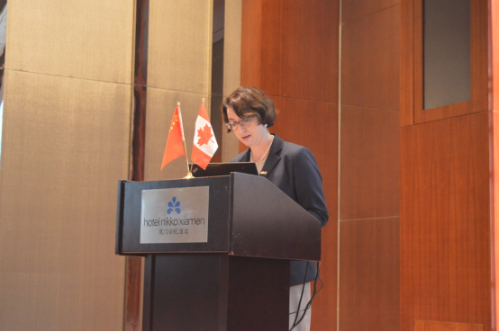 加拿大驻广州总领事馆总领事白静芳女士在会上首先进行了发言。她对中方对于本次活动的辛苦付出表示感谢,并表示,加拿大企业在智能制造领域独树一帜,中国政府也提出了“中国制造2025”的发展战略,交流会在这样的背景下显得意义非凡,希望通过本次交流会,双方能取得进一步的合作。