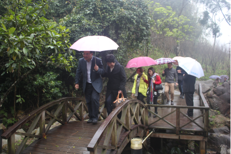 虽然天公不作美但丝毫不减会员企业家们的热情,大家纷纷到达天竺山脚下集合,在旅游公司负责人的带领下,游历了天竺山的自然风貌。山清水秀,鸟语花香,可谓是“海沧桃花源”。山中的樱花在小雨的洗礼下显得格外的娇艳。夹谷中的小瀑布在雨水的“掺和”下倾泻而下,配上小桥流水的如画美景,让人流连忘返。