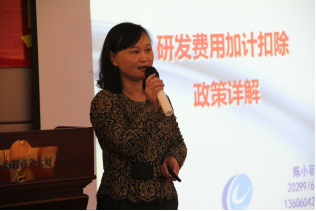 厦门市科技技术协会秘书长陈小菲为会员企业解读“2015年的研发费用加计扣除政策”