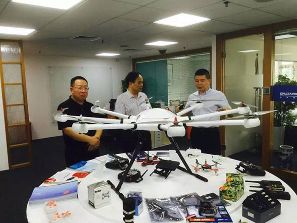 图为参观无人机展区