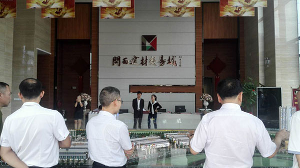 图为参观闽西建材交易城