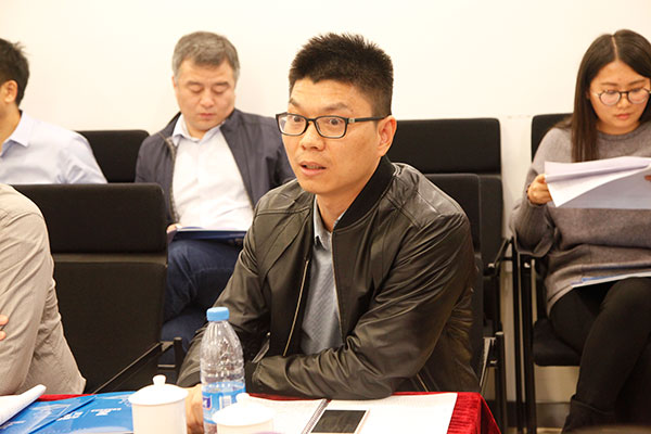 我协会副会长单位厦门智慧小区网络科技有限公司市场总监王尧智在会上发言