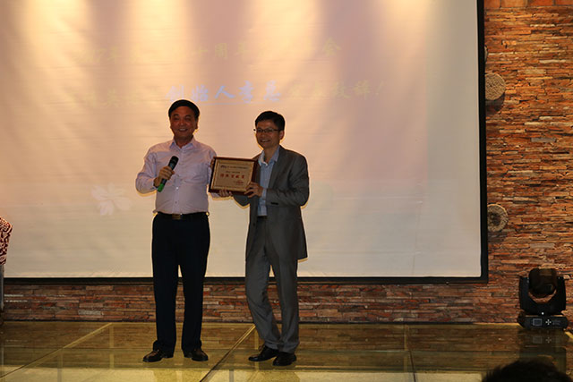 赵善仁会长为厦门英诺尔电子科技股份有限公司颁发特殊贡献奖,英诺尔股份公司董事长李金华接受牌匾