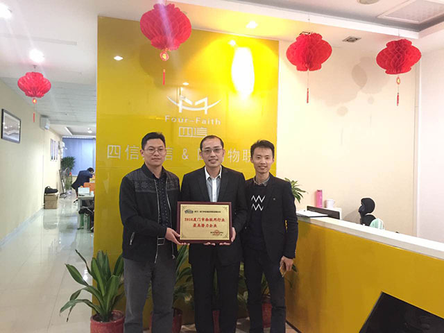 走访副会长单位厦门闽光集团有限公司,图为闽光集团行政经理陈书安与秘书处工作人员合影