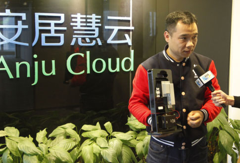 安居慧云总经理王贵航向记者介绍“小兔开门”智能门禁系统