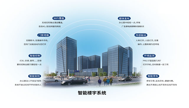 利尔达智能楼宇系统从楼宇节能化、运营网络化、办公智能化三大角度出发,楼宇节能化注重楼宇及园区公共区域及地下室照明节能控制;运营网络化通过无线网络覆盖,实现园区内无线漫游,通过抓取用户信息配合阿里的大数据分析实现目标客户的精准查找及园区管理智能化;办公智能化通过日常行为的分析,通过自动化的控制实现办公室恒定舒适的环境,并通过利尔达物联网智慧云平台为办公室、楼宇、工作园区提供云服务器、定制化ERP系统开发和实施、办公电脑网络维护、办公智能化维护等智能IT服务。