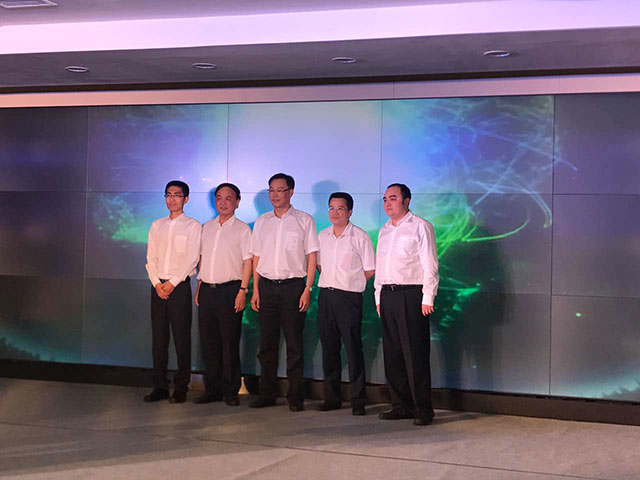图为:厦门市经信局党组副书记陈锋列(左三)、赵善仁会长(左二)参与电信厦门分公司NB-IOT网络启动仪式