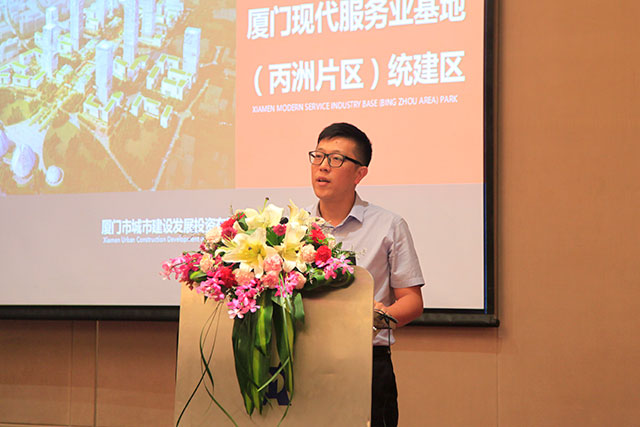 厦门市城市建设发展投资有限公司策划运营中心总监李磊与学员们分享厦门现代服务业园基地(丙洲片区)统建区的招商政策等