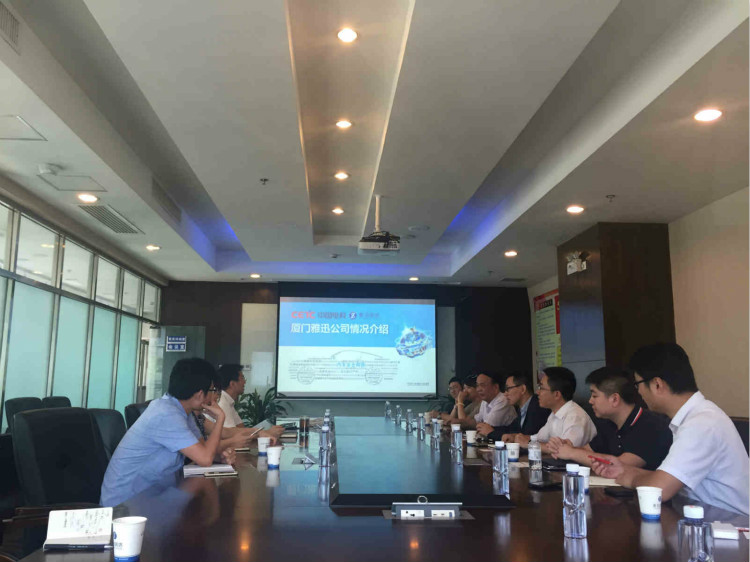 图为:华为一行在厦门雅迅网络股份有限公司进行座谈交流